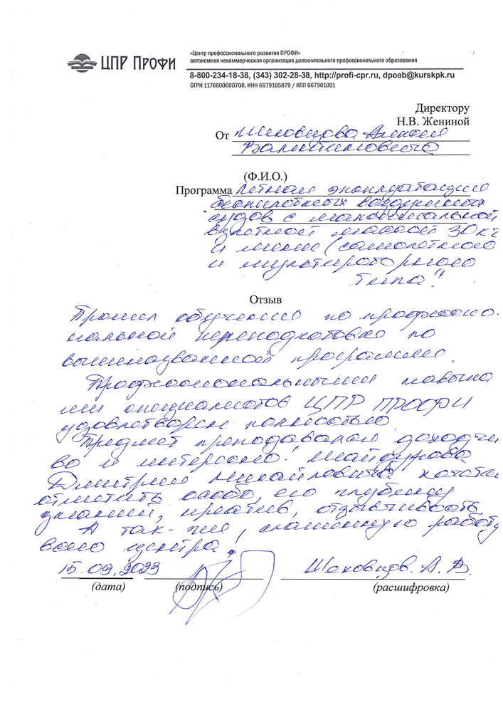 Центр профессиональной переподготовки, повышения квалификации и профессионального обучения.